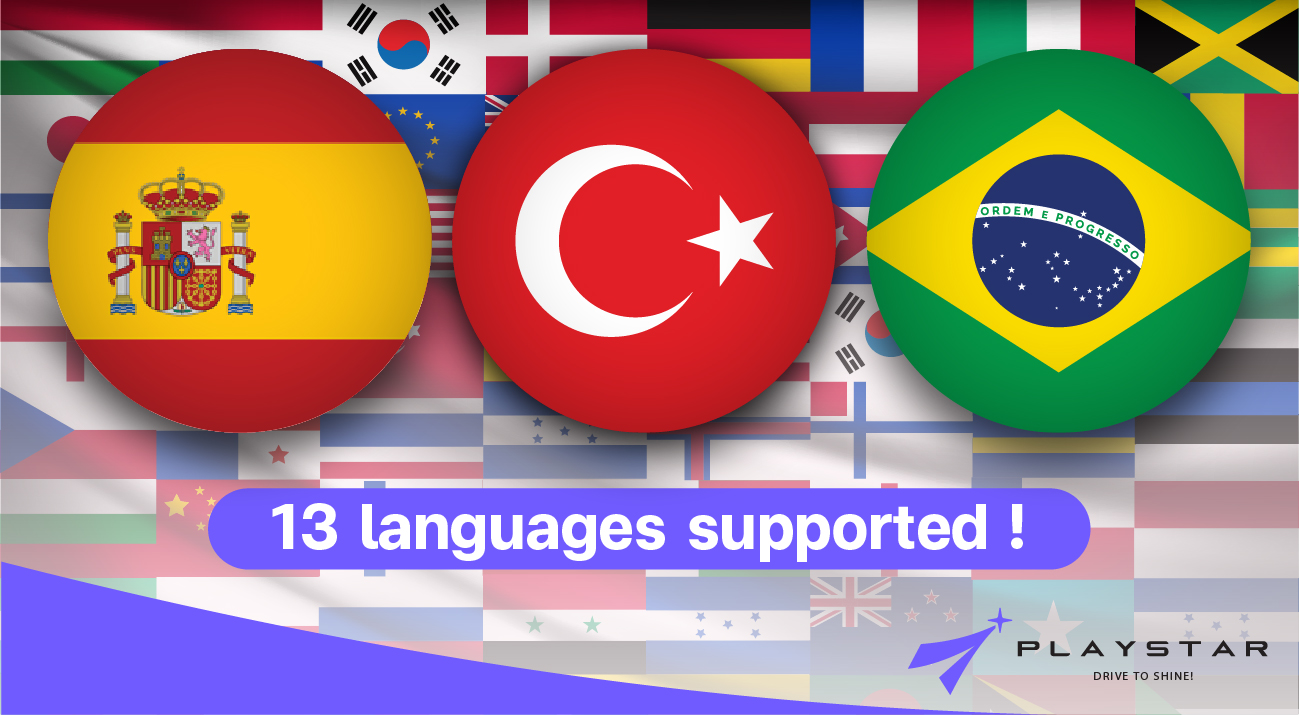 PLAYSTAR added Turkish, Spanish, and Brazilian Portuguese, supporting 13 versions of Simplified Chinese, English, Thai, Indonesian, Korean, Vietnamese, Traditional Chinese, Malay, Japanese, Russian! Join global players to explore new worlds and enjoy diverse experiences together!